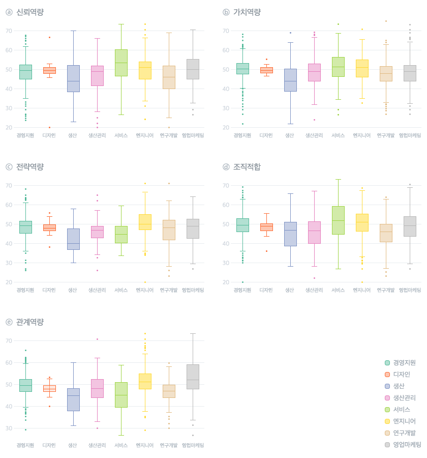 직군별 역량 정보는 재직자들의 역량 프로파일의 모습과 동질성 수준을 판단할 수 있는 자료이며, 이와 같은 정보는 직군별 중요 적성 요인 프로파일링의 근거가 될 수 있다.