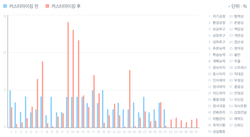 커스터마이징 후 | 커스텀 종합점수 가중치, 응답패턴 커스터마이징 |