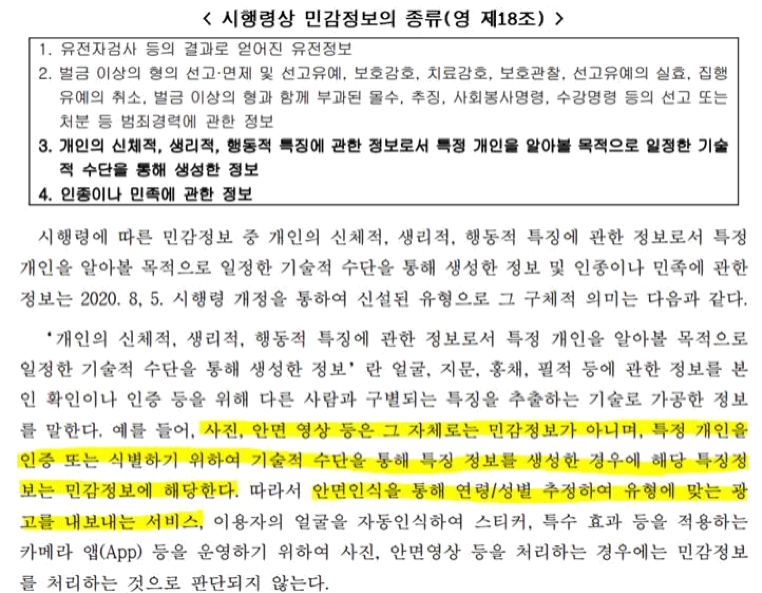 참고로 AI역량검사의 소통역량 검사에서 수집하는 영상/음성 데이터는 기술적 수단을 통해 특정 개인을 인증 또는 식별하기 위한 목적으로 생성된 정보가 아니므로 민감정보14라고 할 수 없다.
