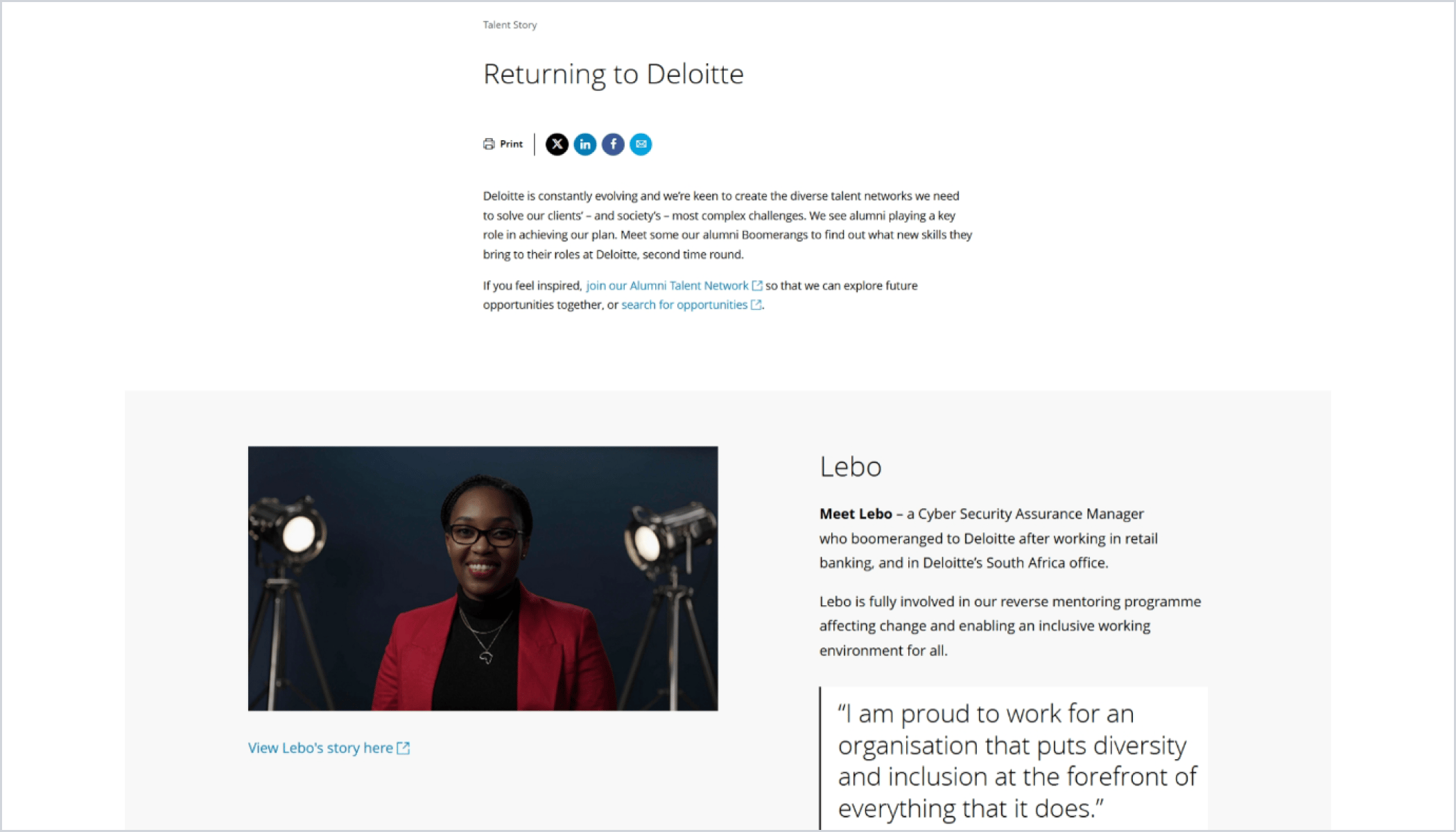 부메랑 직원 인터뷰 콘텐츠를 다루는 Returning to Deloitte