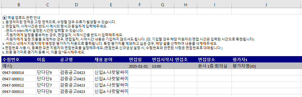 ✔️ 여러 지원자의 면접 상세 내용을 한 번에 입력하려면 엑셀 다운로드 기능을 활용하세요