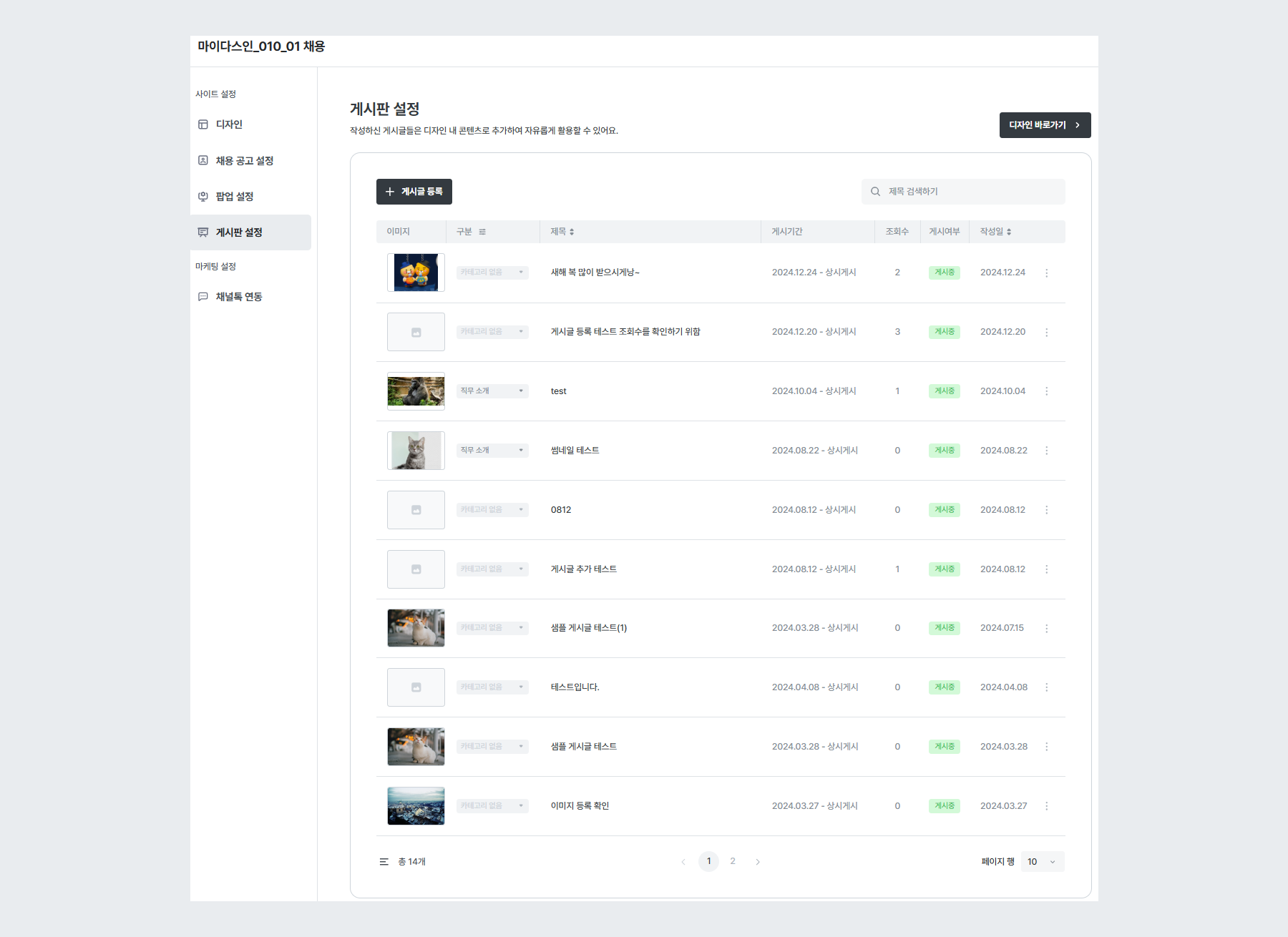 - 게시판 노출 위치 : [채용사이트] - [채용정보] - [채용문의]