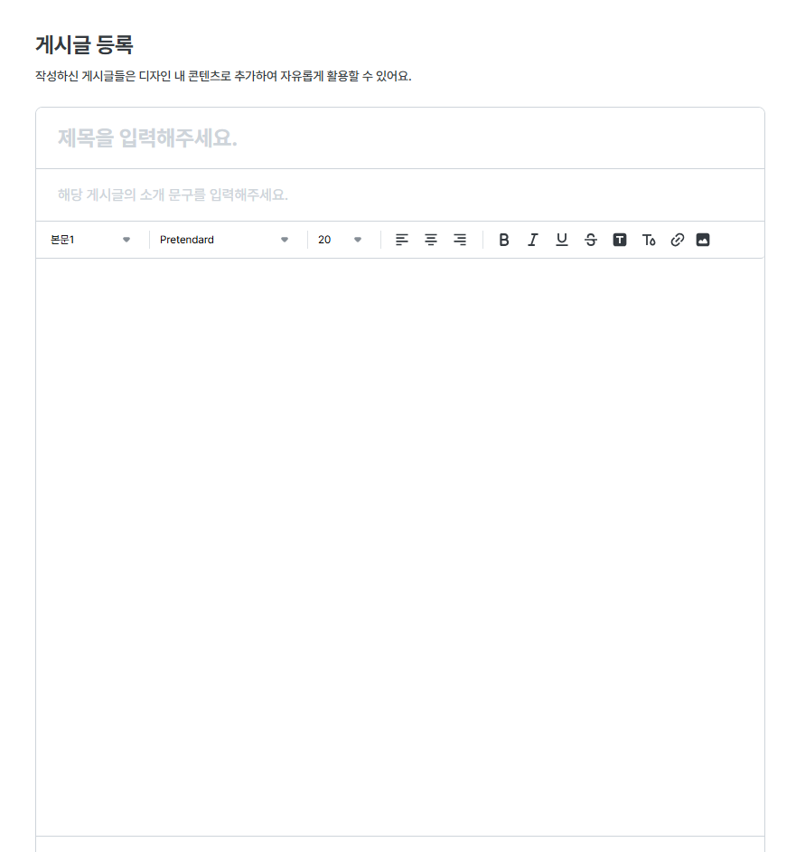 - 게시글 등록 메뉴 내에서 내용 입력 시 하기와 같이 구분되어 사용자에게 노출됩니다.