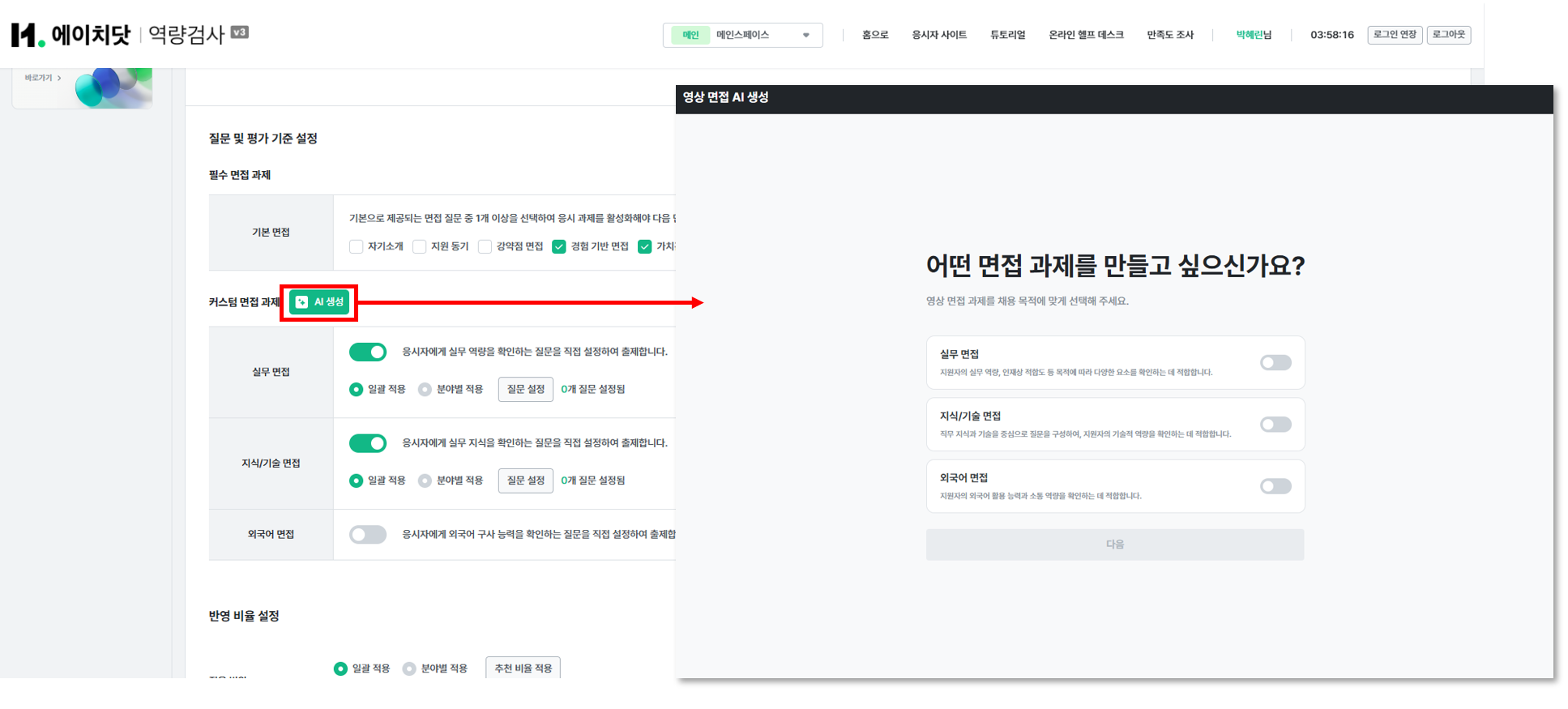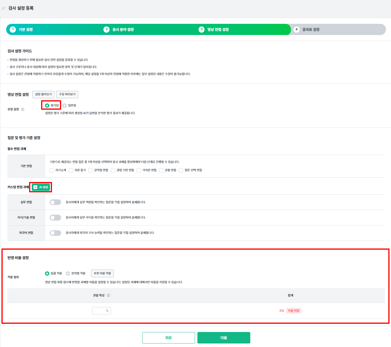 [검사 설정] 영상 면접 AI 큐레이터(평가형)