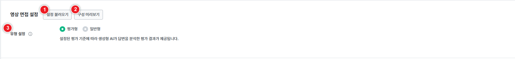 - 영상 면접은 평가형과 일반형 중 하나로 설정할 수 있습니다.