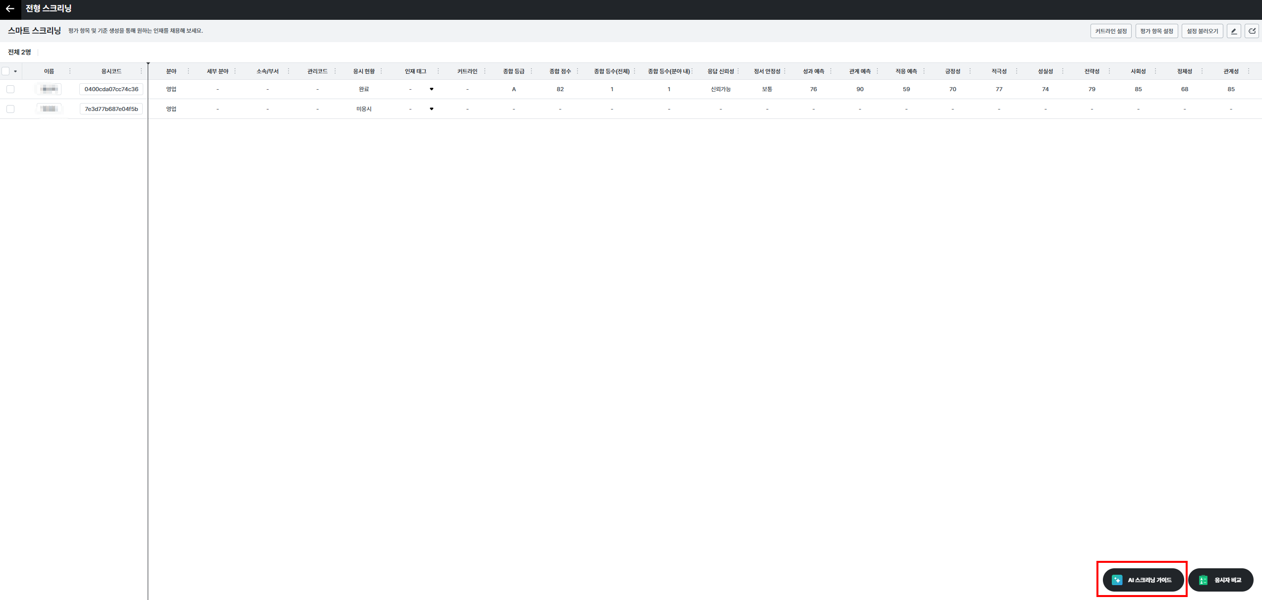 메뉴 위치: 전형 관리 > 전형별 결과 > 스마트 스크리닝 버튼