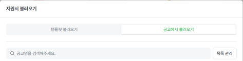 2) 공고에서 불러오기 : 이전 공고에서 사용한 지원서 양식을 검색하여 선택한 후 불러올 수 있습니다.