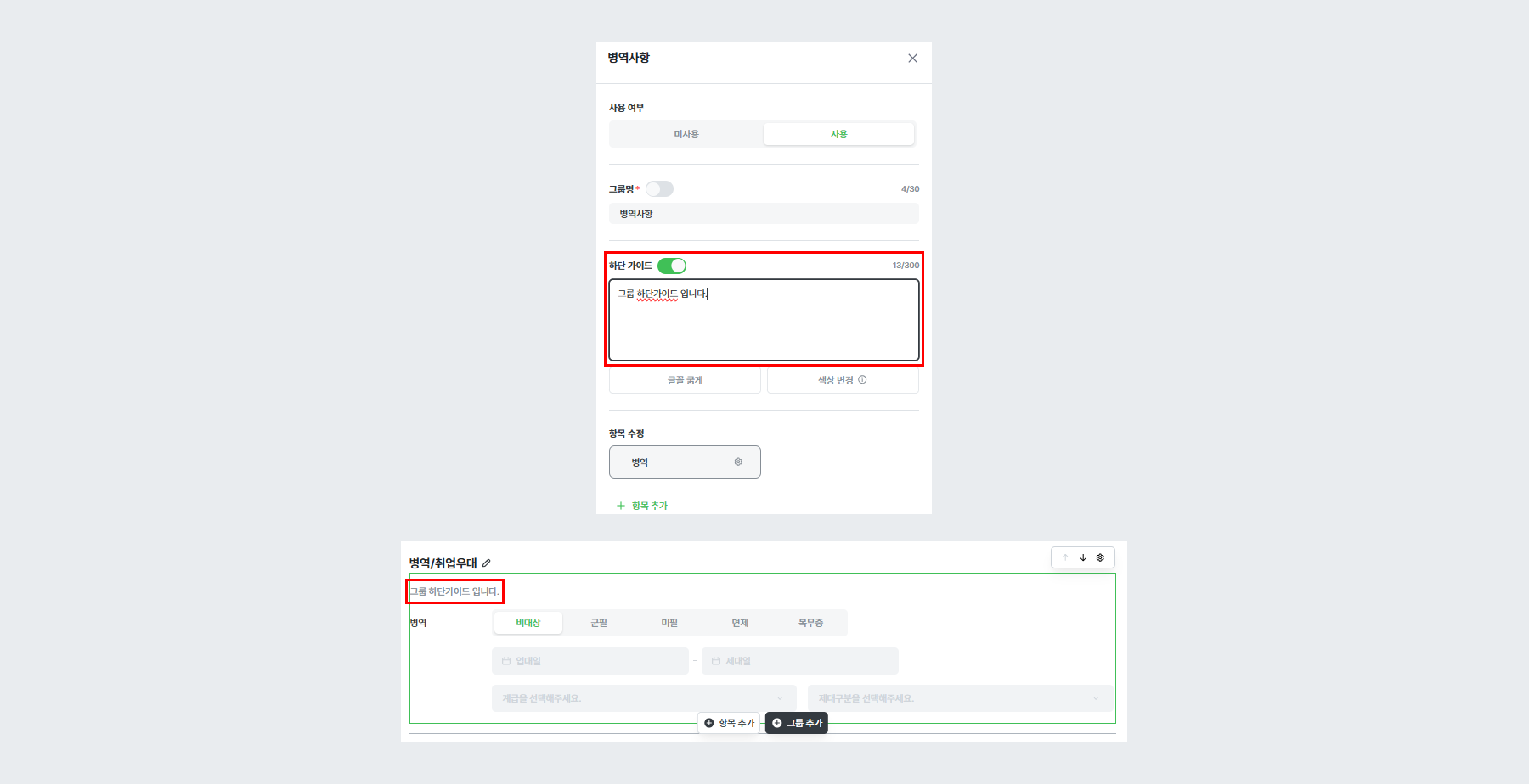 ℹ️ TIP : 모든 그룹은 하단 가이드 작성이 가능합니다.