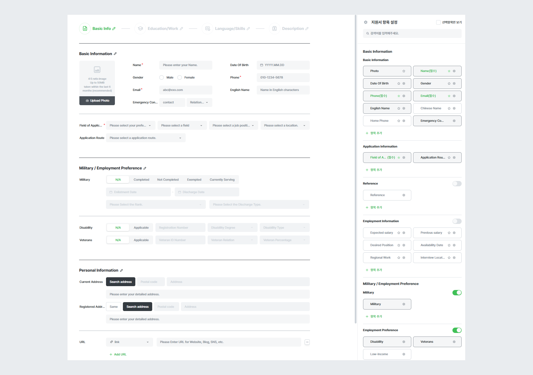 1. 지원서 설정