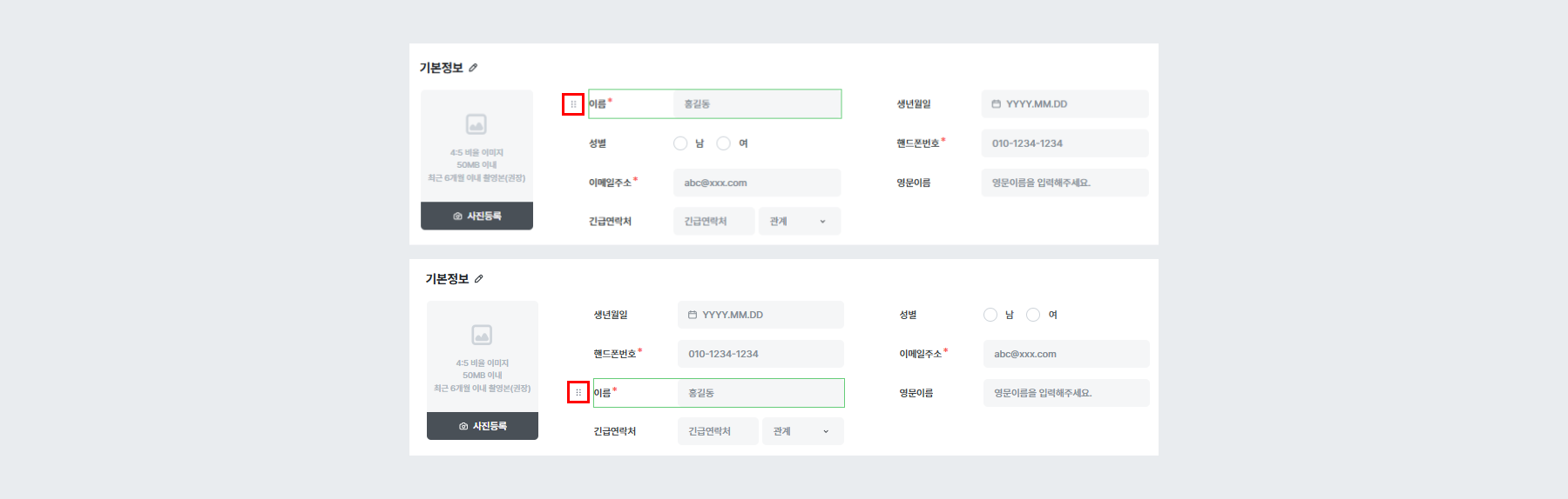 ℹ️ 순번, 명칭은 변경하여도 반영되지 않습니다.