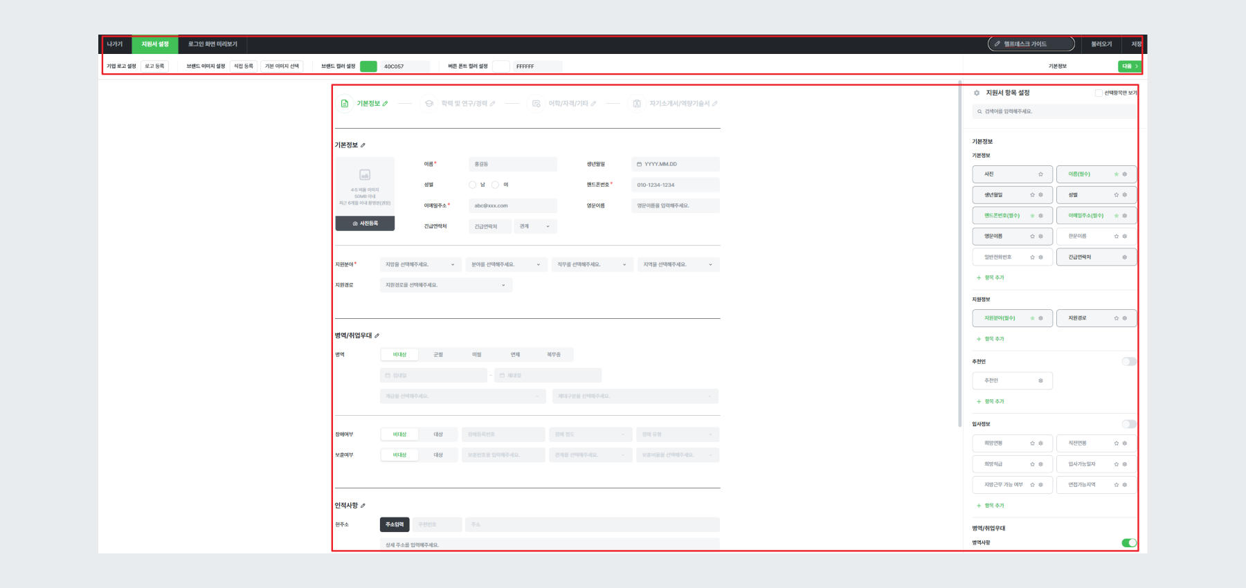 [지원서] 지원서 설정