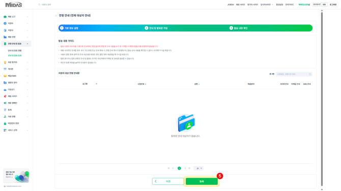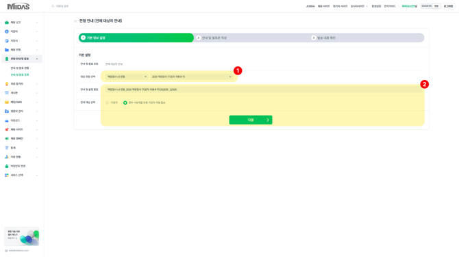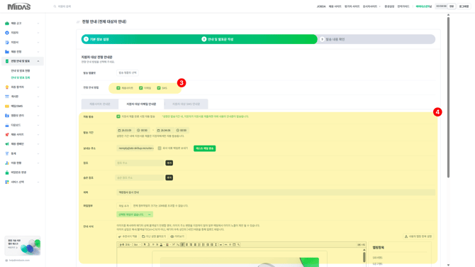 안내문 상세 설정 및 내용 작성 (게시기간, 발송기간, 제목, 안내서식 등)