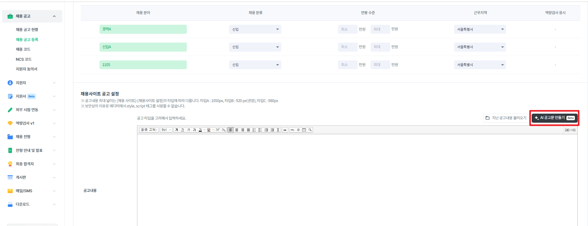 [채용공고] 채용 공고 등록 (AI 공고문)