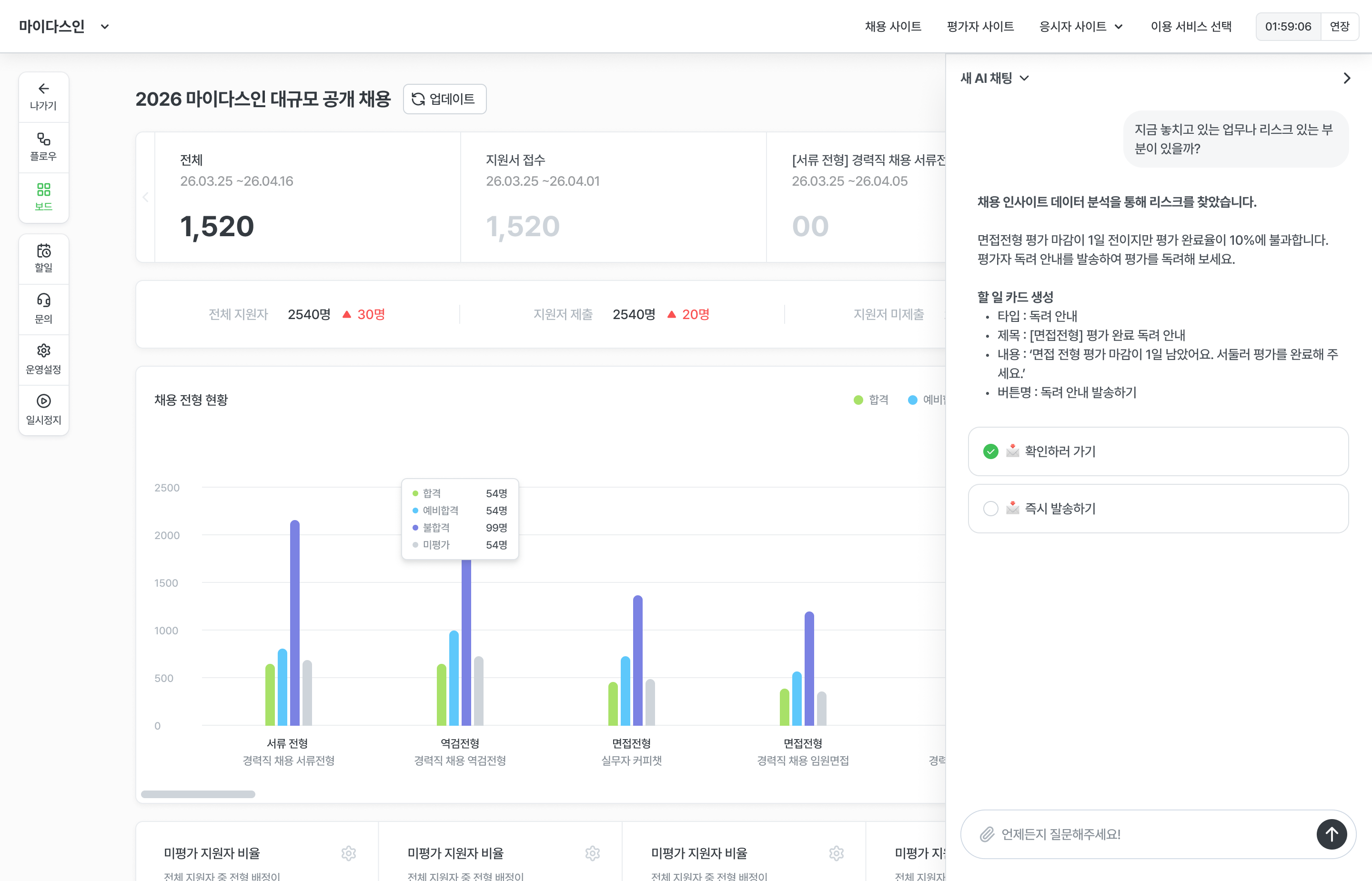 - AI가 기업의 채용 데이터와 최근 기록을 분석해 현재 단계에서 가장 필요한 핵심 업무를 먼저 제안합니다.