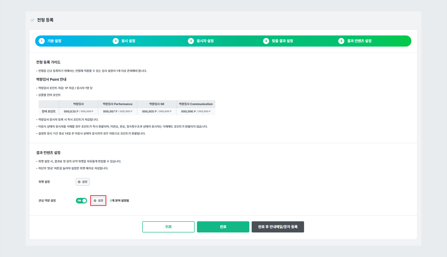 역량검사 v3 전형 결과 콘텐츠 설정