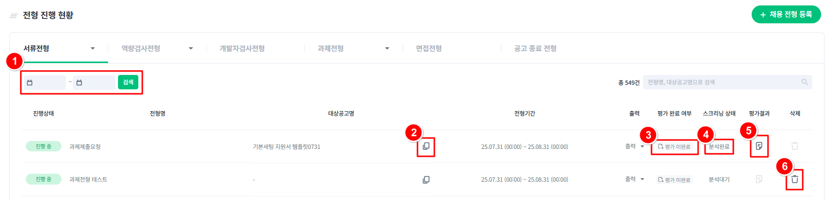 전형 진행 현황에는 진행되는 전형을 쉽게 확인할 수 있도록 돕는 다양한 기능이 내재되어 있습니다.