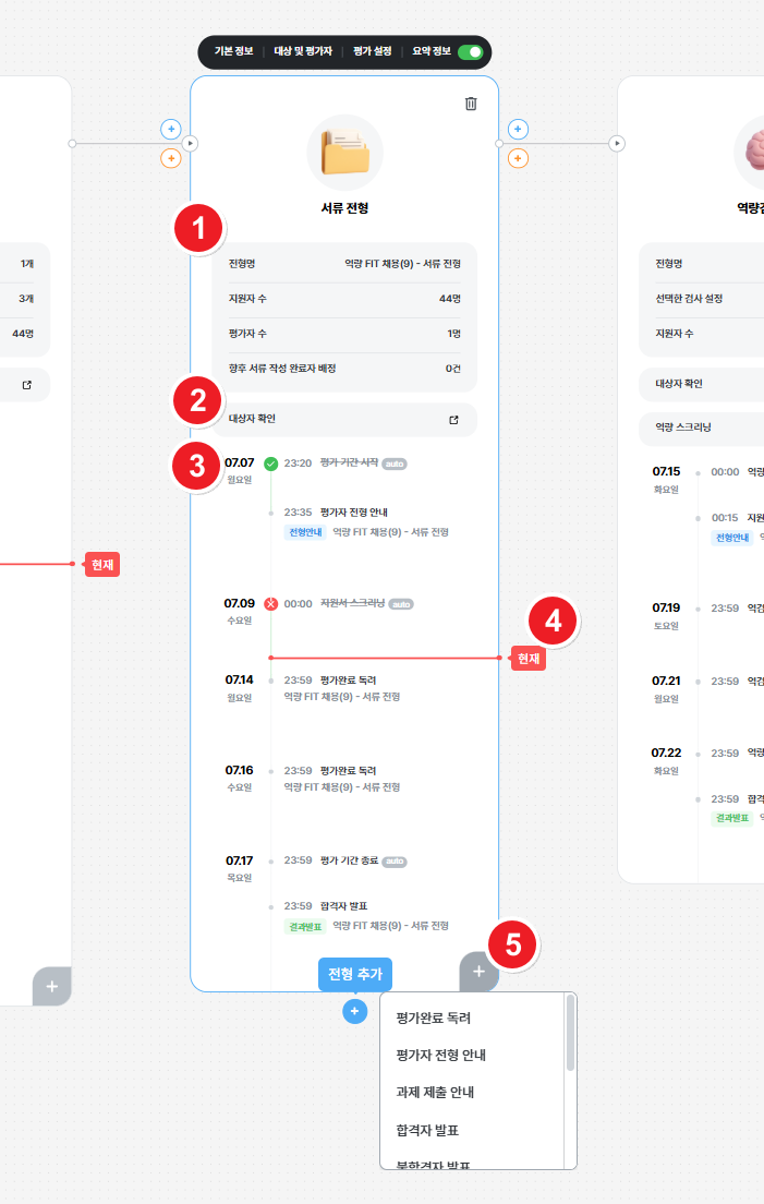 - 전형을 순차적으로 진행할 때 사용합니다.