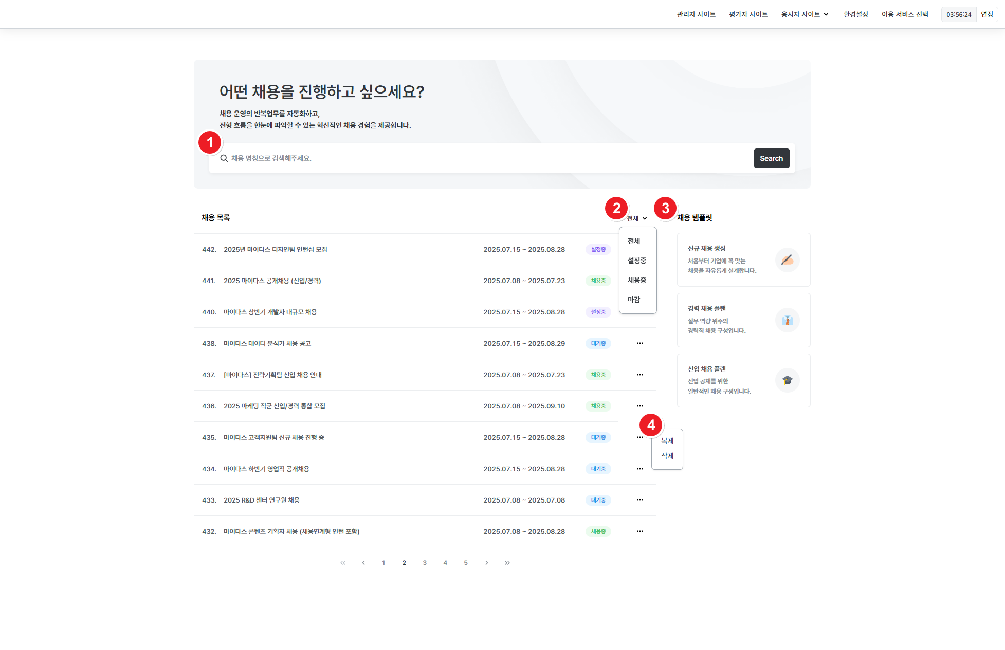 채용 목록은 다음 기준에 따라 필터링할 수 있습니다.
