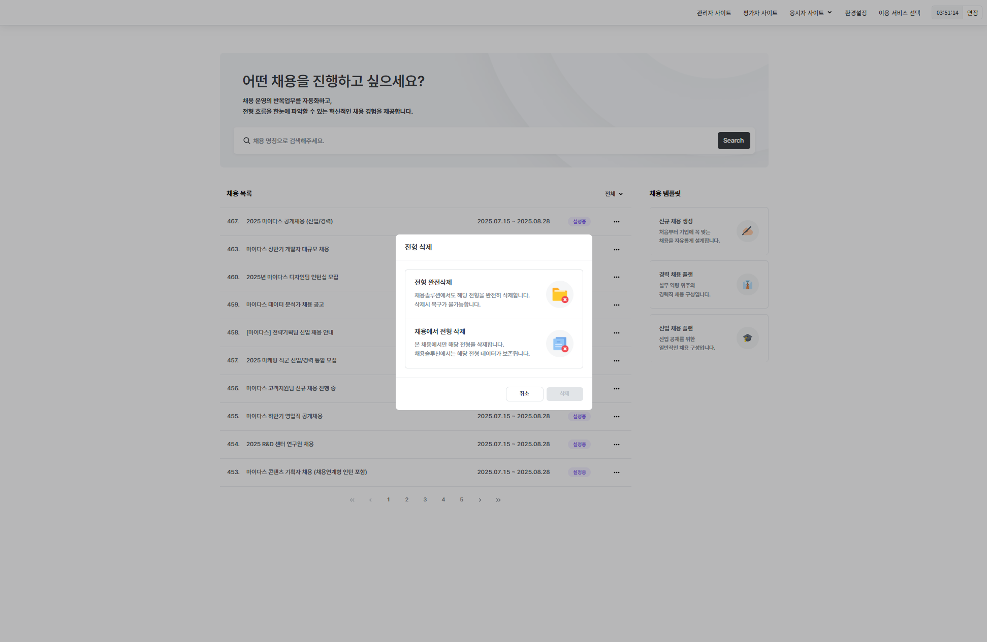 - 관리자 페이지에 입력된 채용 솔루션에서도 해당 전형이 완전히 삭제됩니다.