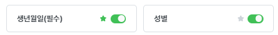 각 항목을 클릭해 사용 및 필수값 여부를 설정할 수 있습니다.