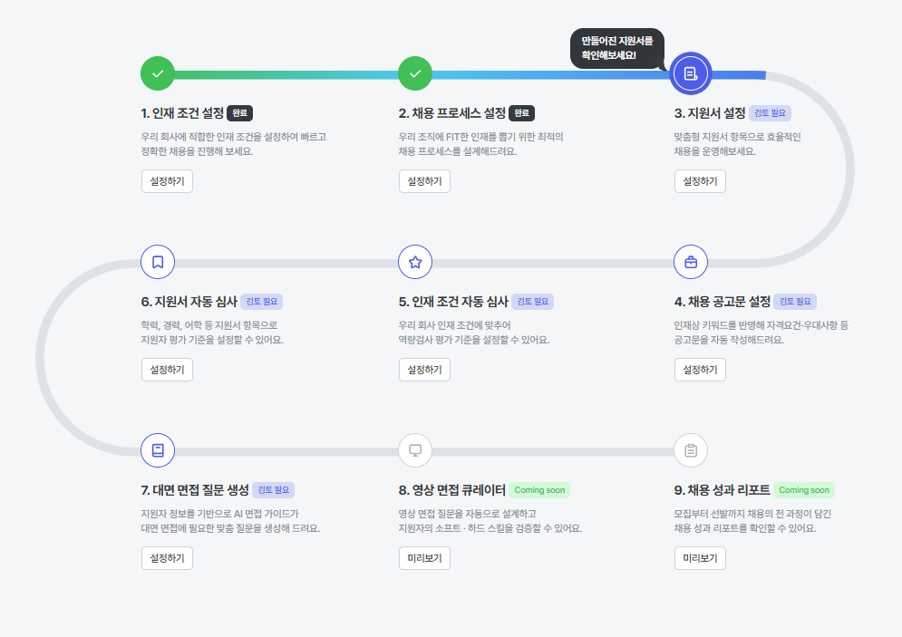 - 지원서 설정에서 각 기능별 상세한 설명을 확인해주세요.