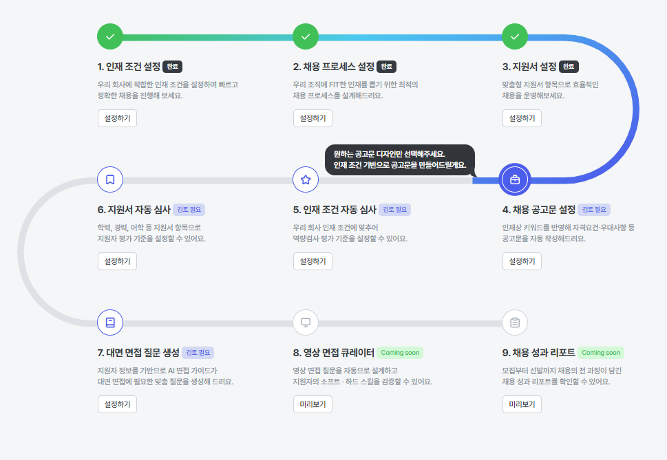 - 화면에 최초 진입 시, AI가 자동으로 직무 내용을 인식해 기본 공고문을 생성합니다.