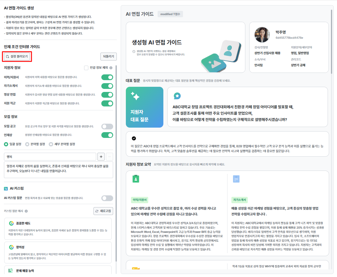*아래의 설정 불러오기를 활용하여, 역검센터 > AI 면접 가이드 설정에서 생성한 목록을 불러올 수도 있습니다.