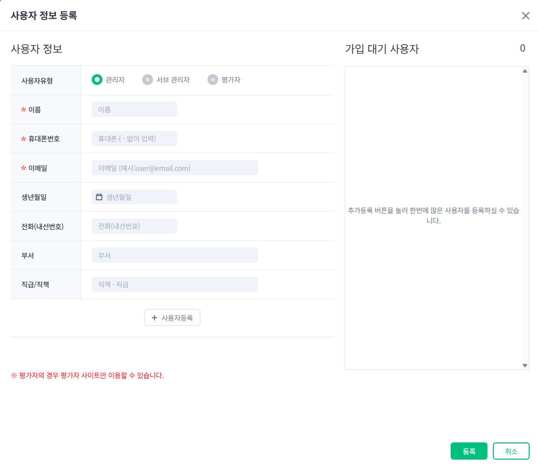 관리자/서브관리자/평가자를 관리할 수 있습니다.