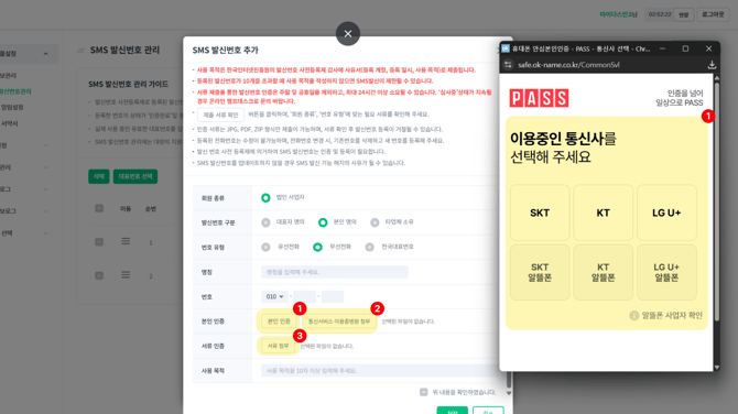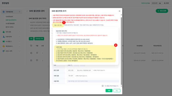 SMS 발송 시 발신번호 미등록 또는 미인증으로 인해 발송 불가 상황